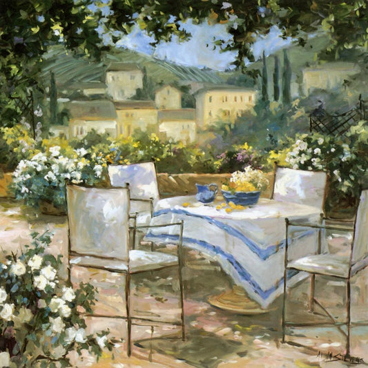 Countryside Terrace White Modern Wood Framed Art Print with Double Matting by Stevens, Allayn