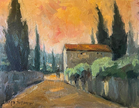Tuscany Hillside II White Modern Wood Framed Art Print with Double Matting by Stevens, Allayn
