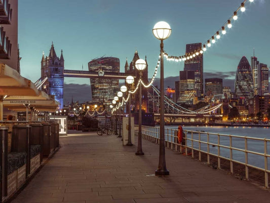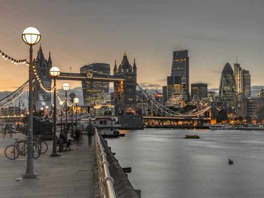 London Riverside Promenade with Tower bridge White Modern Wood Framed Art Print with Double Matting by Frank, Assaf