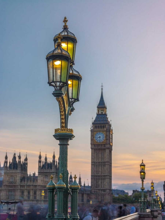 Street lamp with Big Ben, London, UK White Modern Wood Framed Art Print with Double Matting by Frank, Assaf