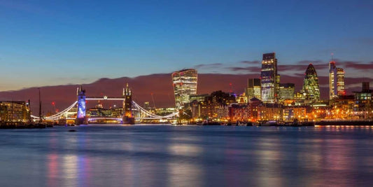 London skyline over river Thames, UK White Modern Wood Framed Art Print with Double Matting by Frank, Assaf