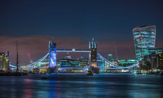 Famous Tower Bridge over River Thames, London, UK White Modern Wood Framed Art Print with Double Matting by Frank, Assaf