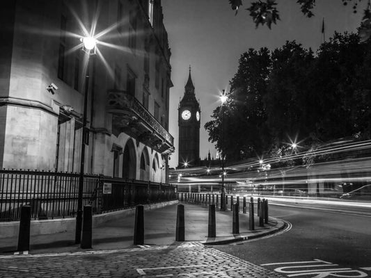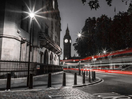 View of Big Ben from street, London, UK, FTBR-1905 White Modern Wood Framed Art Print with Double Matting by Frank, Assaf