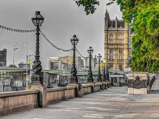 Thames promenade, London, UK White Modern Wood Framed Art Print with Double Matting by Frank, Assaf