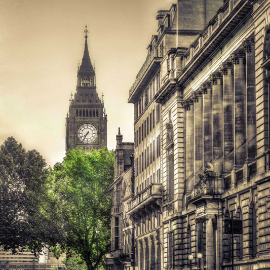 View of Big Ben from Trafalgar Square, London, UK White Modern Wood Framed Art Print with Double Matting by Frank, Assaf