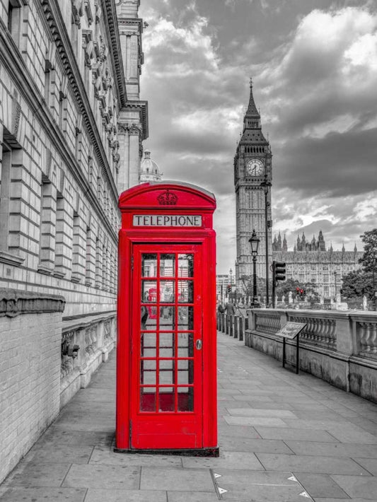 Telephone booth with Big Ben, London, UK, FTBR-1809 White Modern Wood Framed Art Print with Double Matting by Frank, Assaf