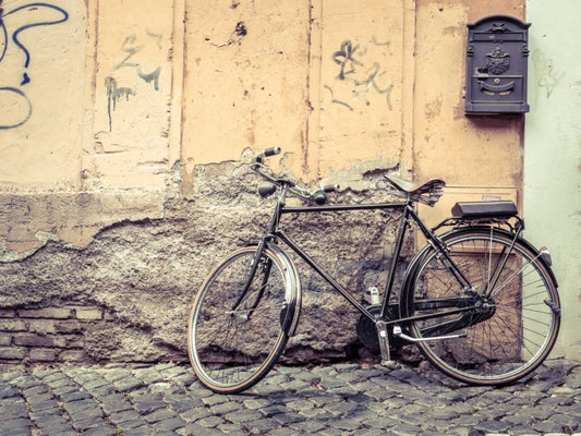 Bicycle outdise old house in Rome White Modern Wood Framed Art Print with Double Matting by Frank, Assaf