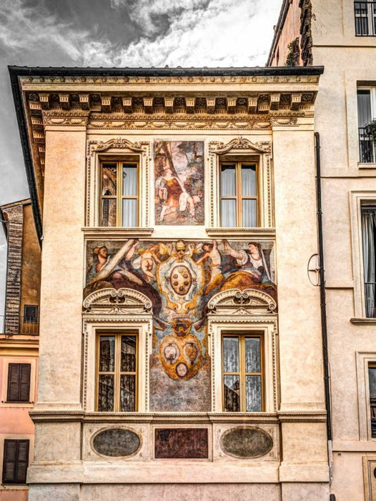 Architectural Feature of old building in Rome White Modern Wood Framed Art Print with Double Matting by Frank, Assaf