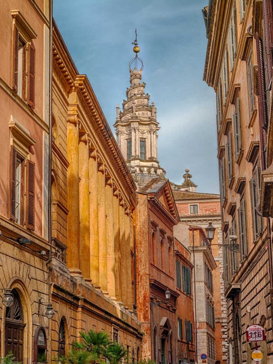 Old buildings in city of Rome White Modern Wood Framed Art Print with Double Matting by Frank, Assaf