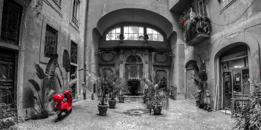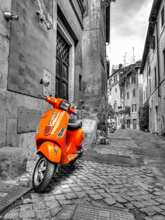 Scooter parked in narrow street of Rome, Italy White Modern Wood Framed Art Print with Double Matting by Frank, Assaf