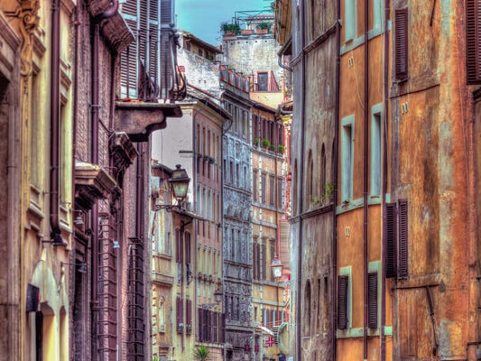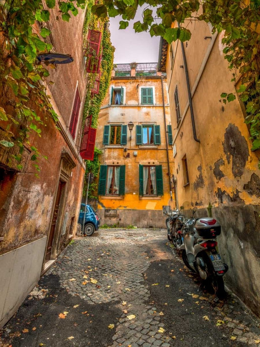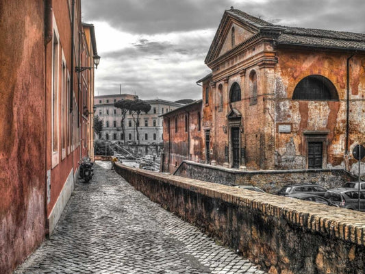 Narrow streets in old town of Rome, Italy White Modern Wood Framed Art Print with Double Matting by Frank, Assaf