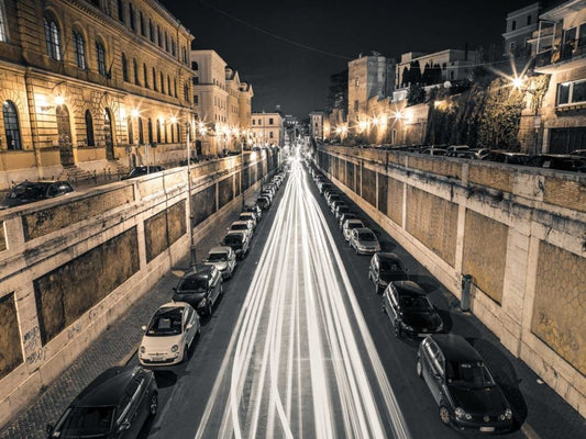 Strip Lights on road, Rome, Italy White Modern Wood Framed Art Print with Double Matting by Frank, Assaf