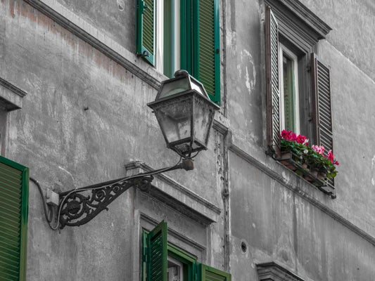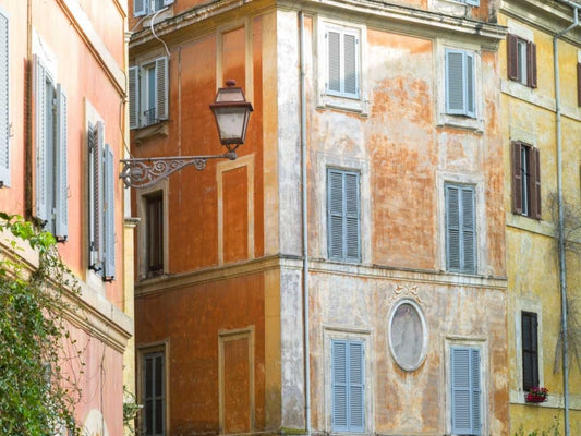 Lamp on an old buildings in city of Rome, Italy White Modern Wood Framed Art Print with Double Matting by Frank, Assaf