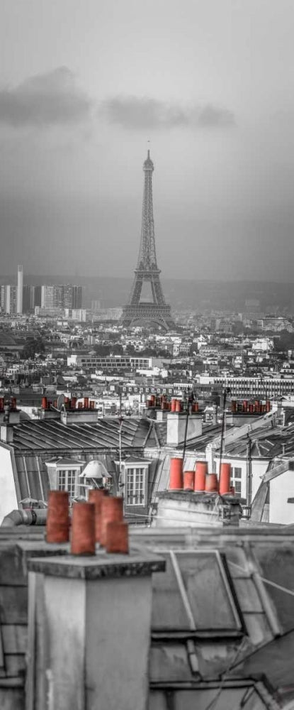 Cityscape of Montmartre with Eiffel Tower, Paris, France White Modern Wood Framed Art Print with Double Matting by Frank, Assaf