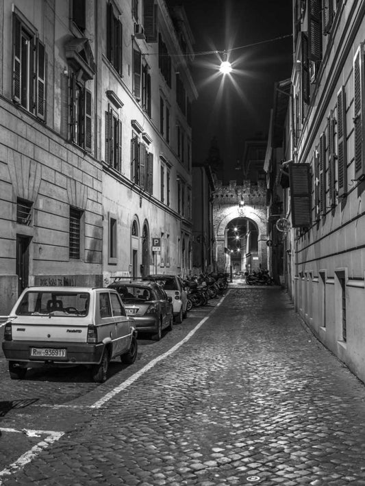 Vehicles parked on narrow city streets of Rome, Italy White Modern Wood Framed Art Print with Double Matting by Frank, Assaf