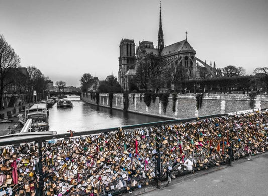 Pont des Arts bridge with love padlocks, Paris White Modern Wood Framed Art Print with Double Matting by Frank, Assaf