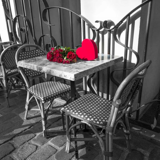Bunch of flowers on sidewalk cafe table, Paris, France White Modern Wood Framed Art Print with Double Matting by Frank, Assaf