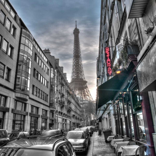 Eiffel tower from city street, Paris, France White Modern Wood Framed Art Print with Double Matting by Frank, Assaf