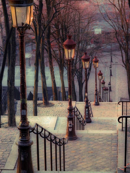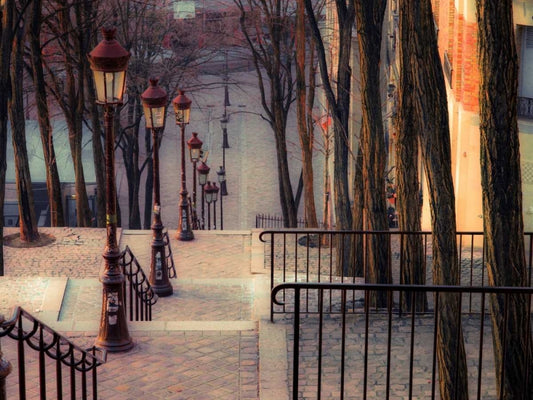 The famous staircase in Montmartre, Paris, France White Modern Wood Framed Art Print with Double Matting by Frank, Assaf