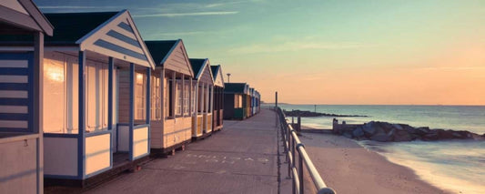 Beach huts at sunset White Modern Wood Framed Art Print with Double Matting by Frank, Assaf