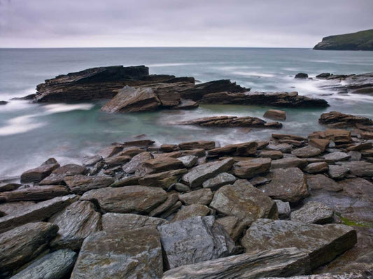 Trebarwith Strand White Modern Wood Framed Art Print with Double Matting by Frank, Assaf