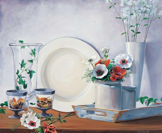 Tea time White Modern Wood Framed Art Print with Double Matting by Roelofs, Wouter