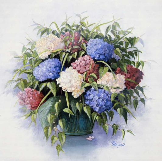 Mixed Hydrangia White Modern Wood Framed Art Print with Double Matting by Motz, Peter