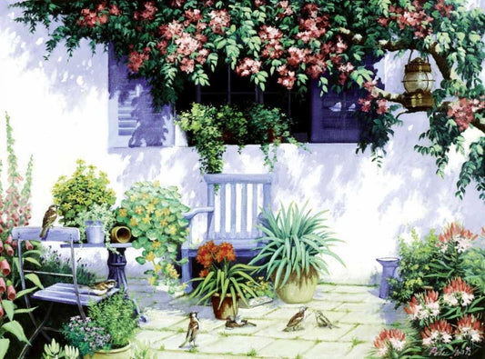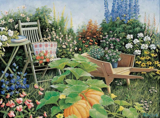 Garden delights White Modern Wood Framed Art Print with Double Matting by Motz, Peter