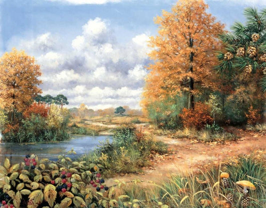 Autumn time White Modern Wood Framed Art Print with Double Matting by Motz, Peter