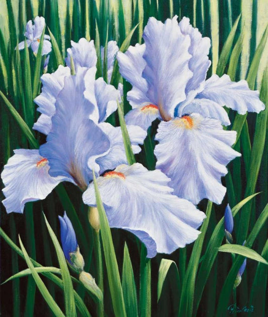 Blue flowers White Modern Wood Framed Art Print with Double Matting by Motz, Peter