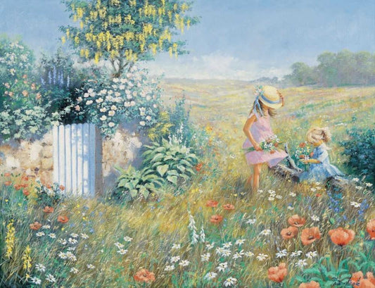 Summertime White Modern Wood Framed Art Print with Double Matting by Motz, Peter