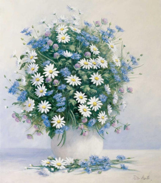 Bouquet in blue White Modern Wood Framed Art Print with Double Matting by Motz, Peter