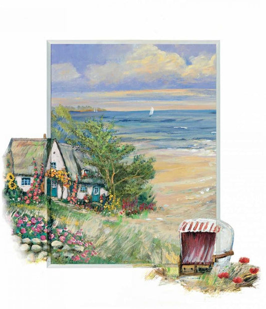 The sea and home White Modern Wood Framed Art Print with Double Matting by Schottler, Katharina