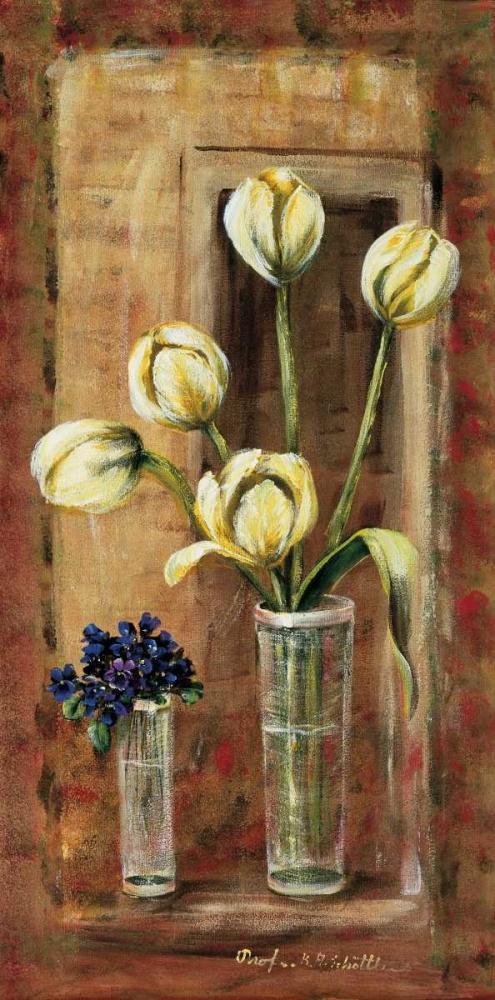Flowers at your door White Modern Wood Framed Art Print with Double Matting by Schottler, Katharina
