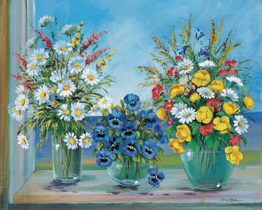 A vase with pansies White Modern Wood Framed Art Print with Double Matting by Schottler, Katharina