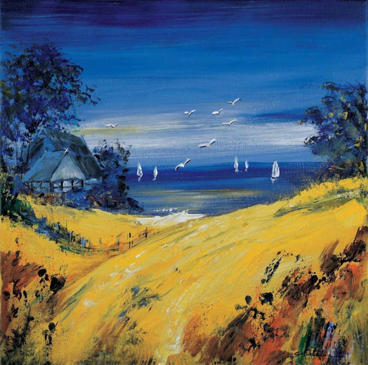 The sea and birds White Modern Wood Framed Art Print with Double Matting by Schottler, Katharina
