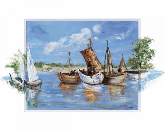 The sea and boats White Modern Wood Framed Art Print with Double Matting by Schottler, Katharina