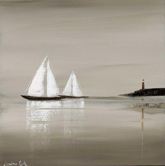 Sailing Grey I White Modern Wood Framed Art Print with Double Matting by Cook, Andrea