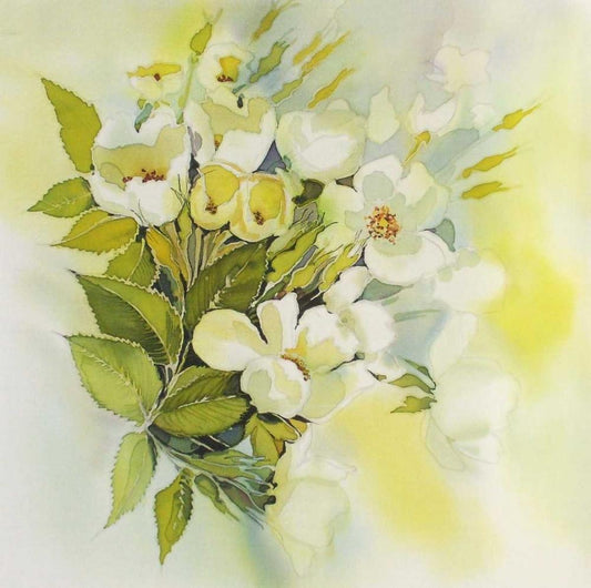 Soft Floral White Modern Wood Framed Art Print with Double Matting by Mayskaya, Alisa