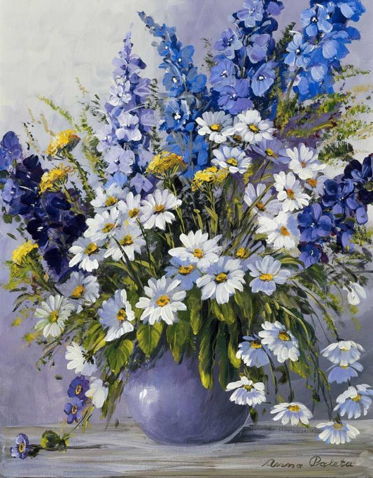 Vase with cornflowers White Modern Wood Framed Art Print with Double Matting by Paleta, Anna