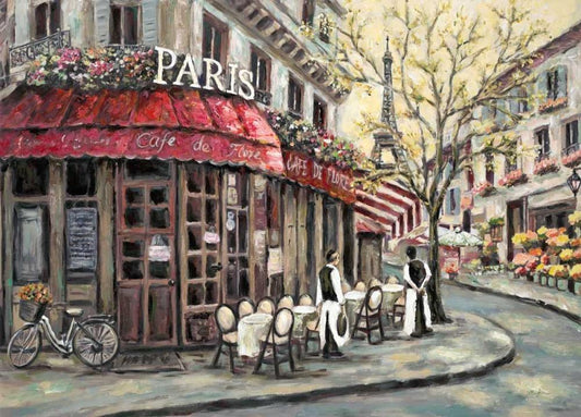 Flower Market Cafe White Modern Wood Framed Art Print with Double Matting by Brighton, William