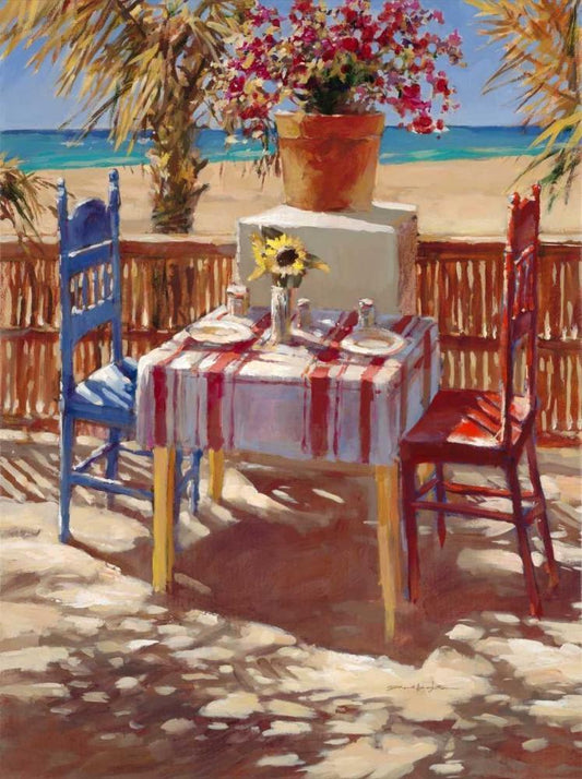 Seaside Cafe White Modern Wood Framed Art Print with Double Matting by Heighton, Brent