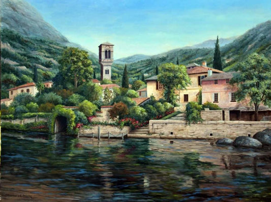 The Lenno Shore White Modern Wood Framed Art Print with Double Matting by Felisky, Barbara
