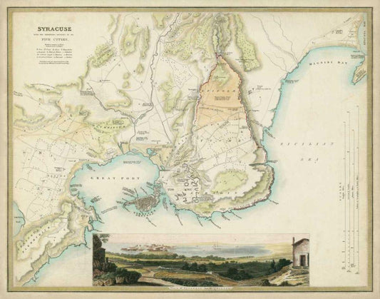 Map of Syracuse White Modern Wood Framed Art Print with Double Matting by Davies, R.B.