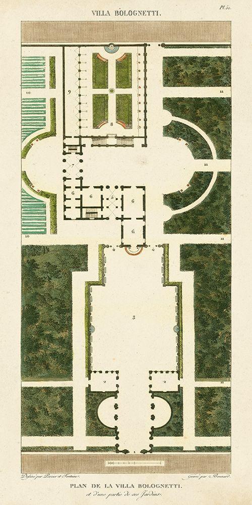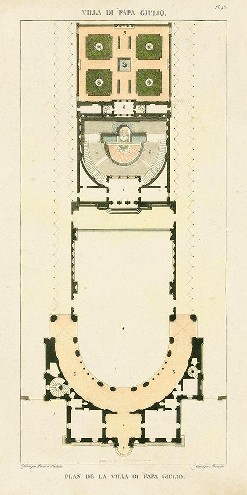 Plan de la Villa di Papa Guilio White Modern Wood Framed Art Print with Double Matting by Bonnard