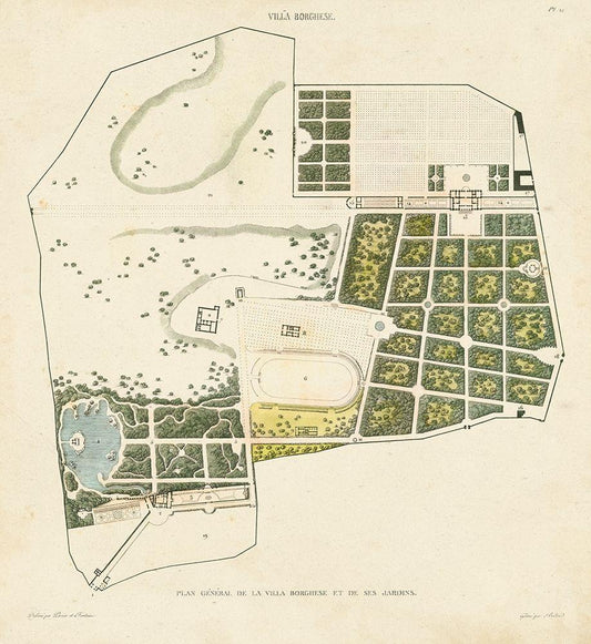 Plan General de la Villa Borghese White Modern Wood Framed Art Print with Double Matting by Baltard