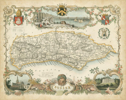 Map of Sussex White Modern Wood Framed Art Print with Double Matting by Unknown