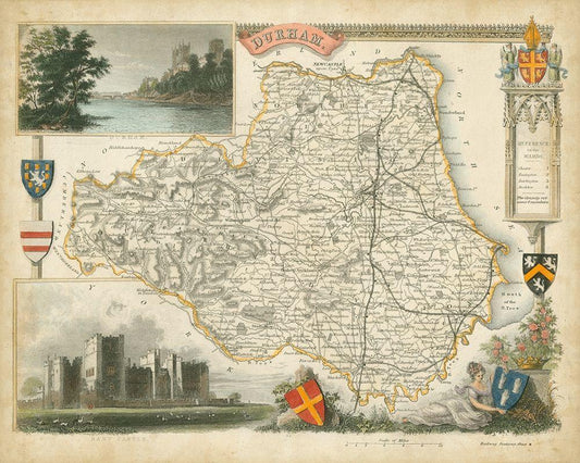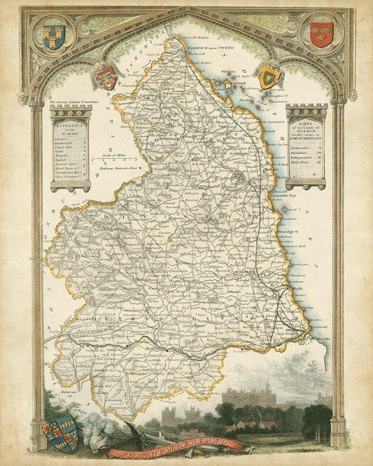 Map of Northumberland White Modern Wood Framed Art Print with Double Matting by Unknown