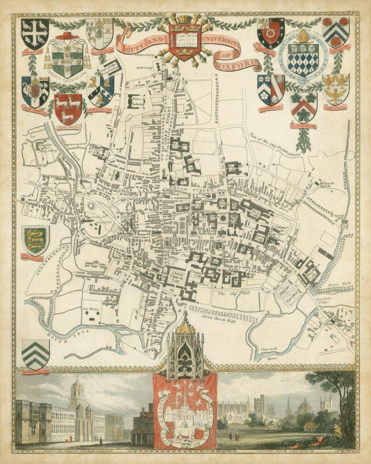 City and University of Oxford White Modern Wood Framed Art Print with Double Matting by Unknown