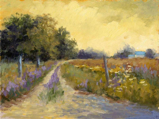 Falls Golden Fields White Modern Wood Framed Art Print with Double Matting by Weber, Mary Jean